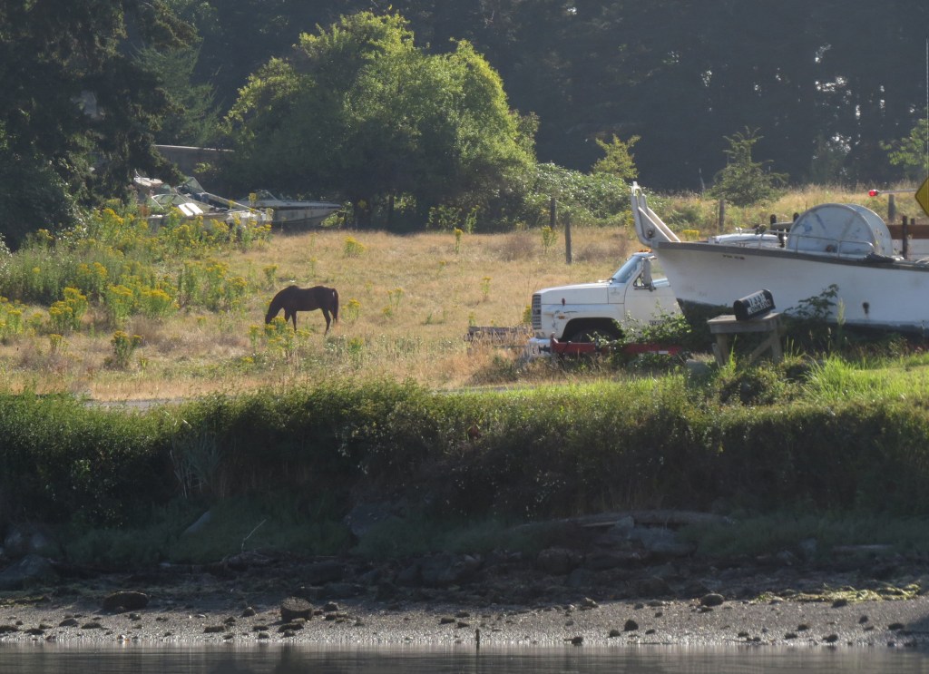First, I wanted to paddle to the end of the bay to see if much had changed at the Nordland General Store. The store has been here forever. On my way, I spotted a couple of horses in a small pasture. Unfortunately, I had to shoot right into the sun. It’s not every day that I get to photograph horses, so I took the shots anyway.
