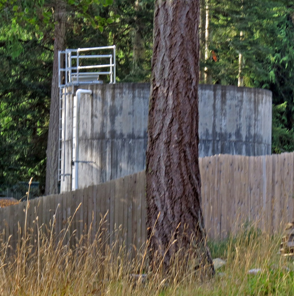We had wondered whether the houses had to have generators, but apparently they are supplied with metered electricity, and I spotted this water tower. Doesn’t look like they rough it too much.