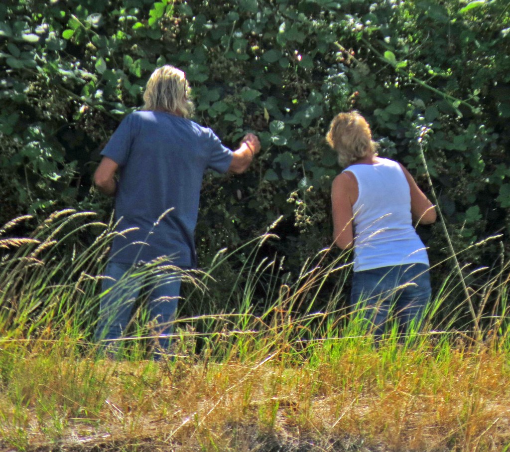 This is berry season, and there are lots of blackberries growing along the road.  These boaters are probably thinking about making a fresh blackberry pie.