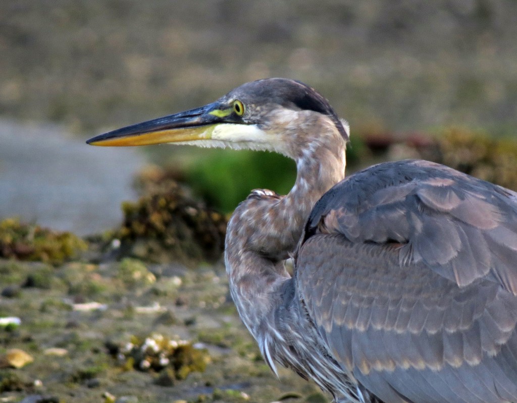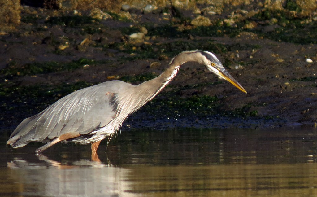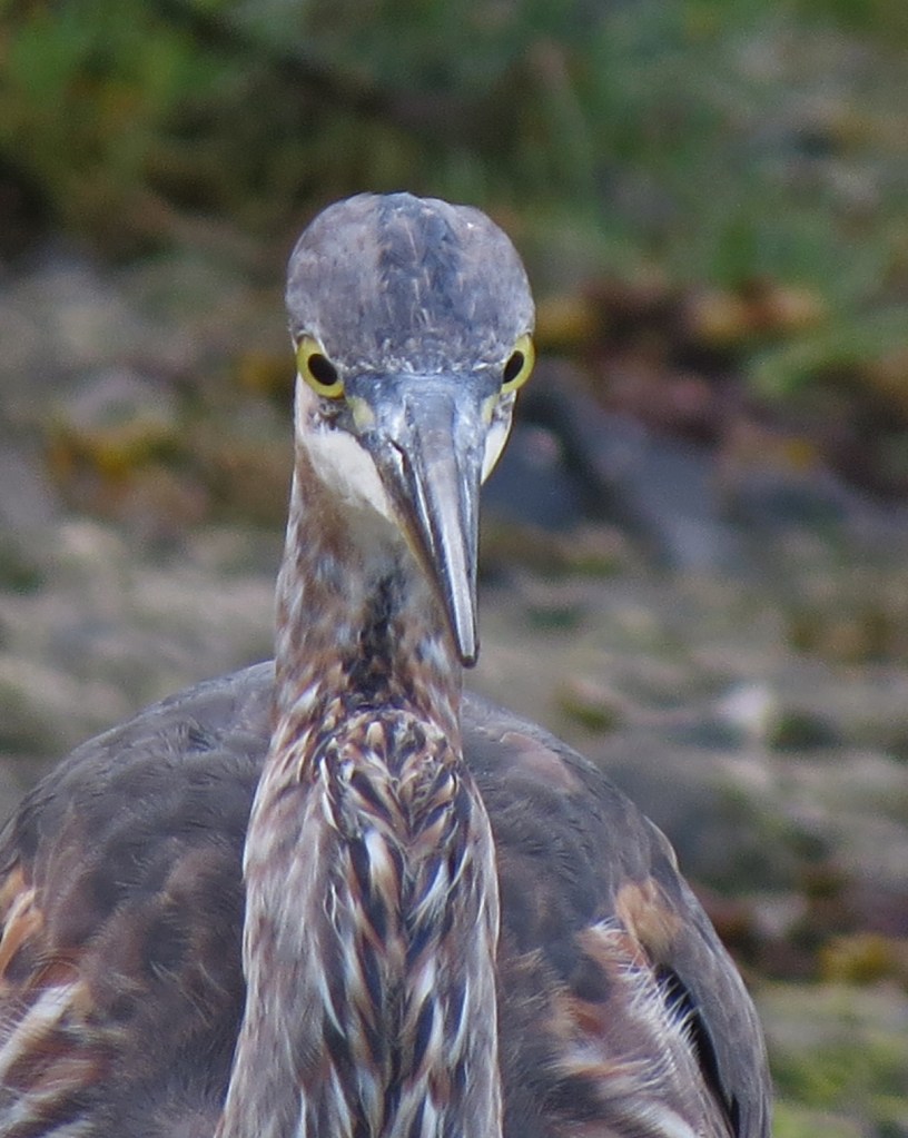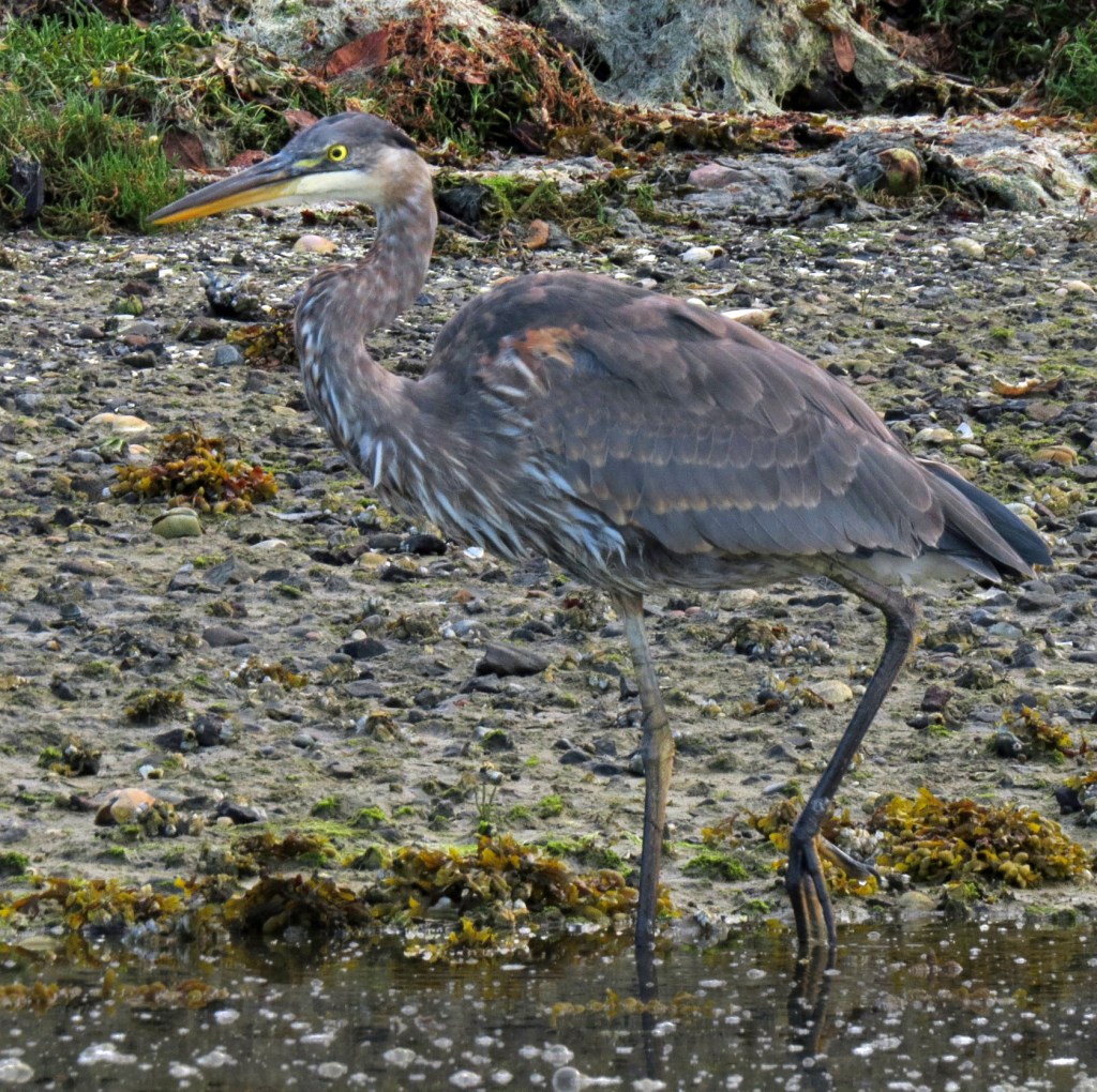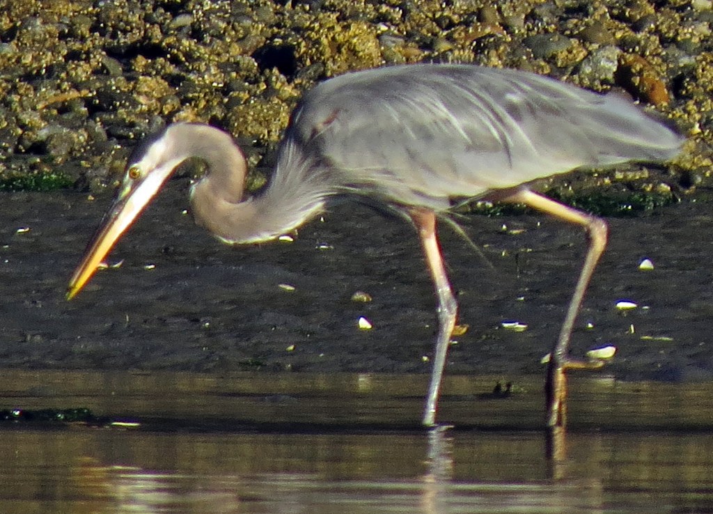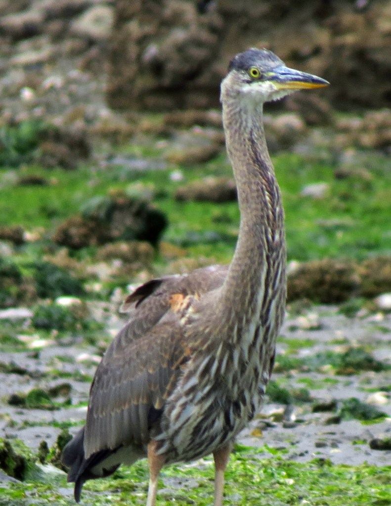 By now, it was time to head back to the boat.  On my way I came across this blue heron on a rocky shore.