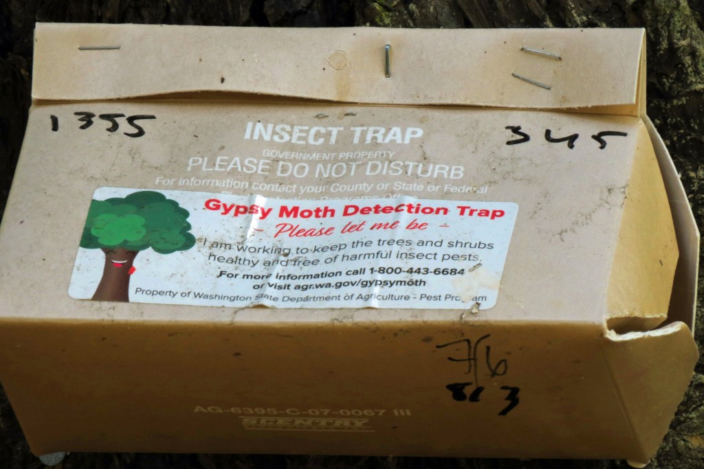 I noticed this unusual cardboard box attached to a tree, and decided to check it out.  Apparently, they have a problem with Gypsy Moths on Lopez Island; or, they don’t want to have a Gypsy Moth problem.
