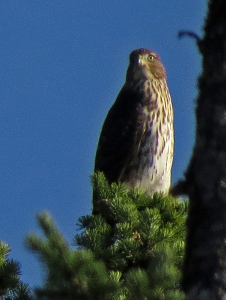 While I was looking up in the trees for herons, this hawk flew way up to the very top of a tree.