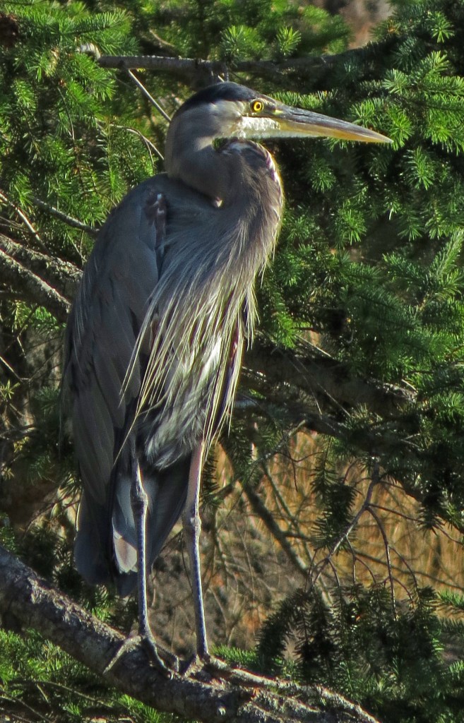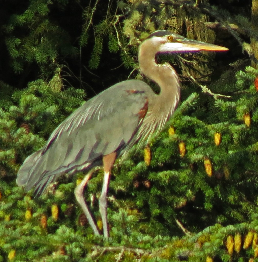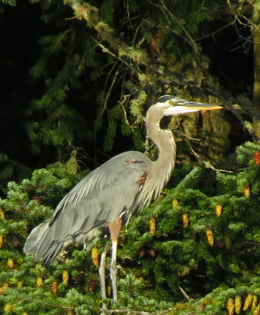 And, also way up in a tree, I spotted this blue heron.  He’s not going to catch any fish up there.