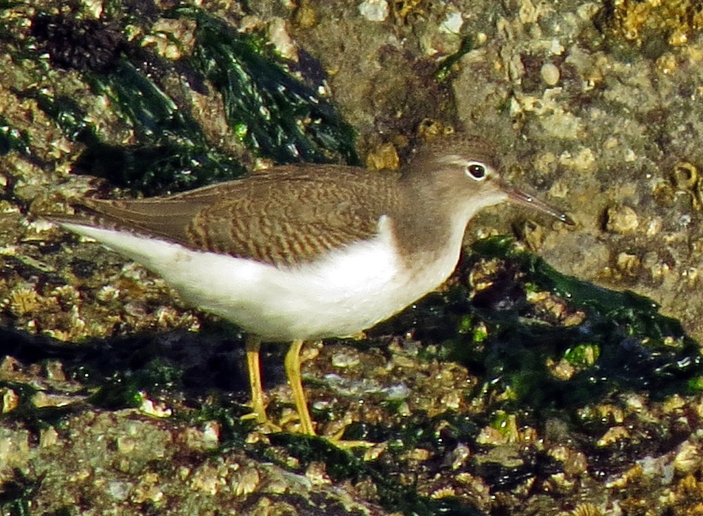 Down on the rocky shoreline, this sandpiper made a brief appearance.
