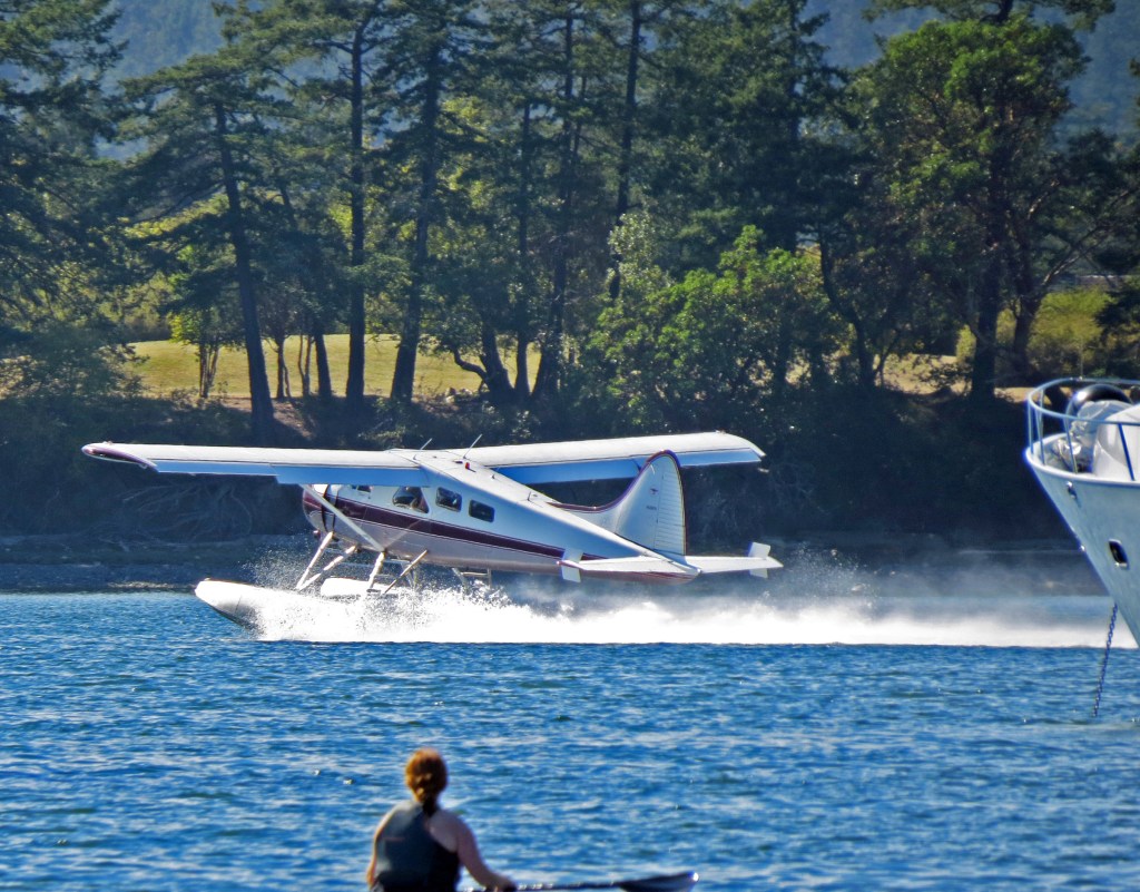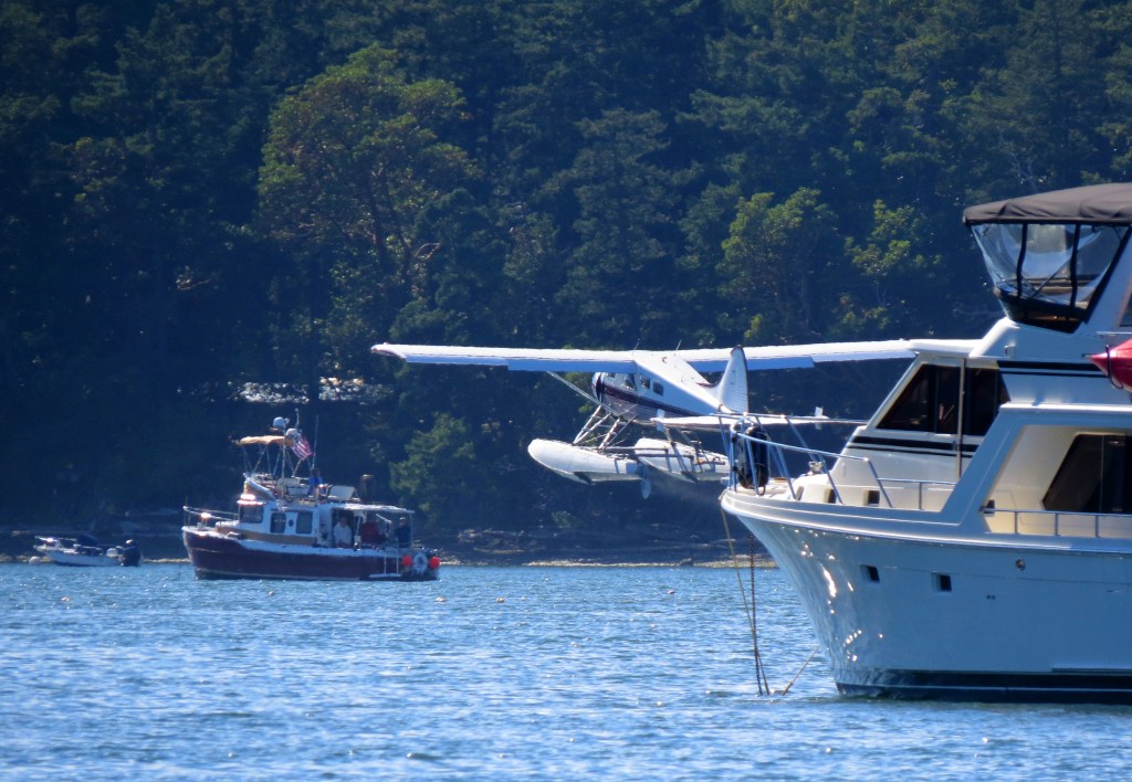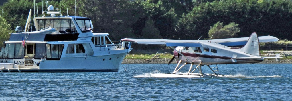 This afternoon, I heard an airplane engine.  I grabbed my camera and was able to get photos of the floatplane that I photographed yesterday taking off.  It’s scary how they take off between boats.