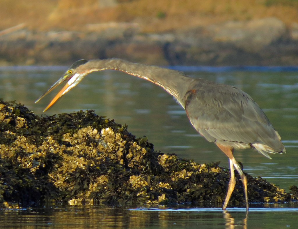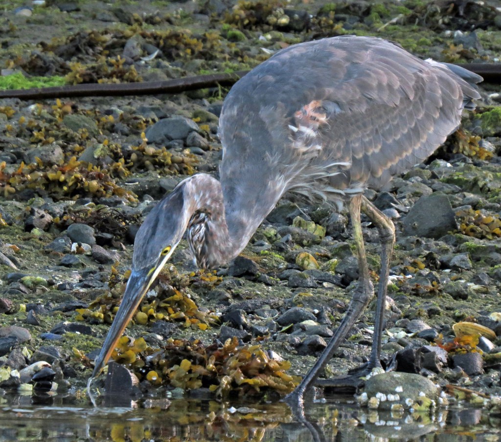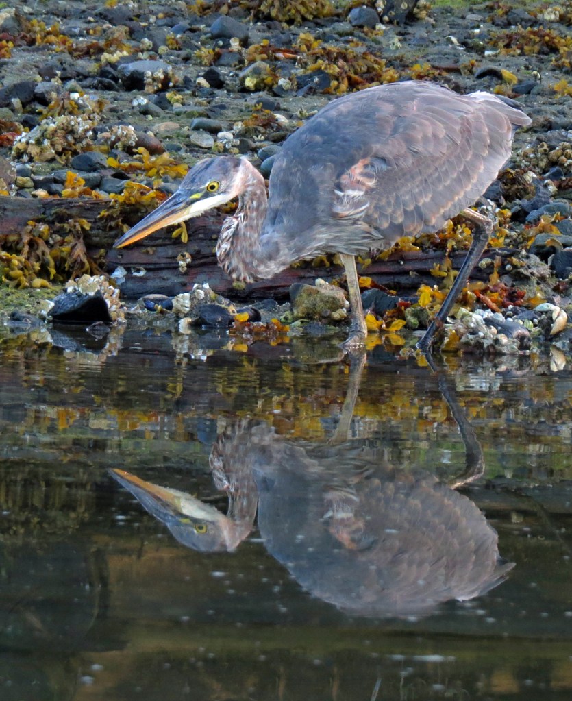 When I got to English Camp, I found the heron that was here yesterday. And, once again, he paid me no mind. He was too busy hustling up breakfast.