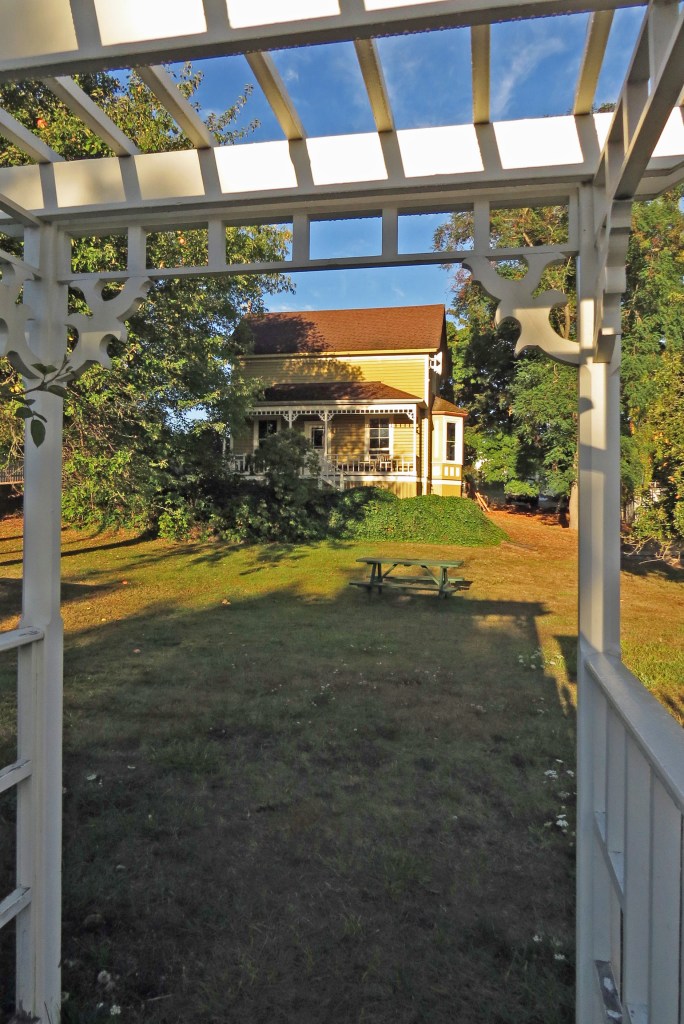 I climbed and climbed and finally got to a fork in the path. I decided to take the unmarked path, thinking it might take me down to the shores of Prevost Harbor. Wrong. I walked and climbed for another 30 minutes, and when I discovered where this trail ended, I couldn’t believe it, but there in front of me was the school house I hiked to day before yesterday!
