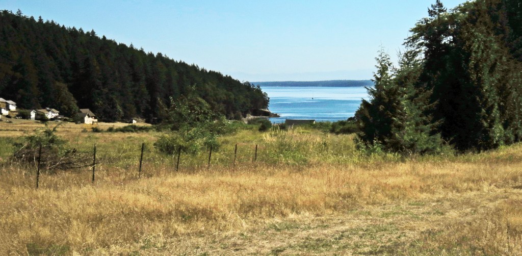So, back I went to the fork in the trail. Fortunately, from there I didn’t have far to go to the isthmus of Stuart Island, where the state park dock is located. The sun had come out. The view was beautiful.