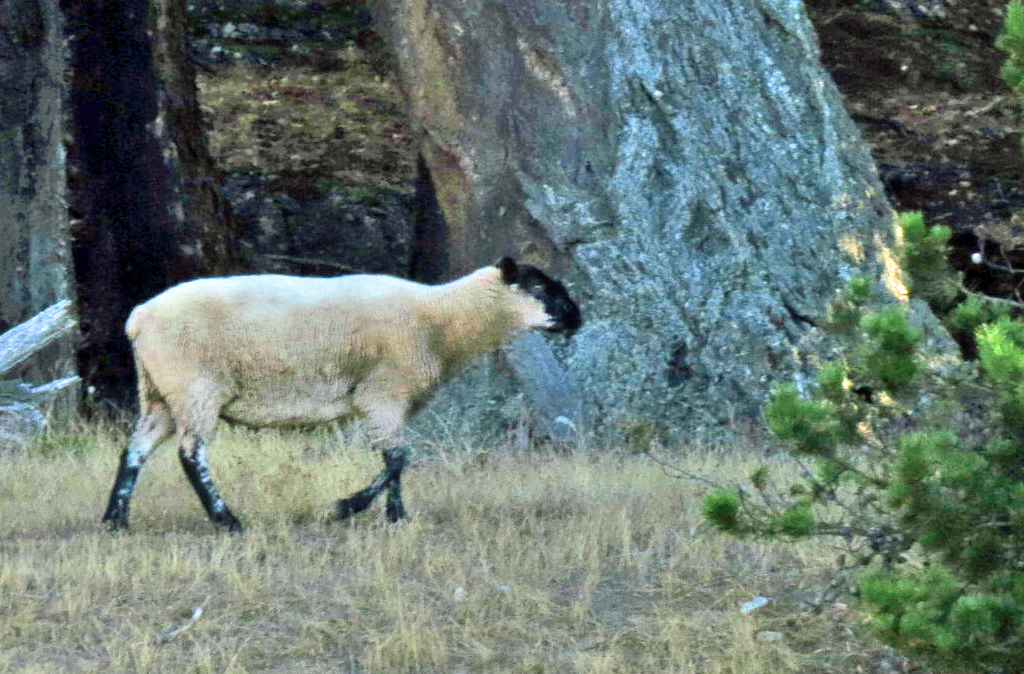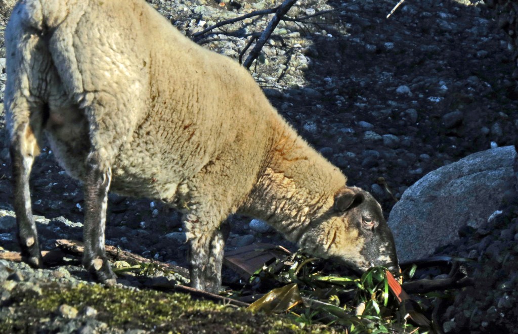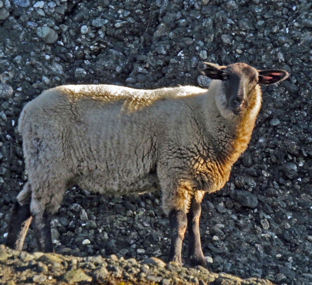 When I reached the entrance, I checked on the fog situation and decided I’d take a chance on going out into the channel. As I rounded the point, I was looking for seals or otters, when, to my amazement, this sheep appeared!