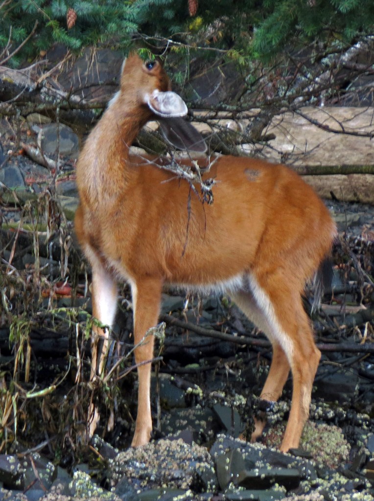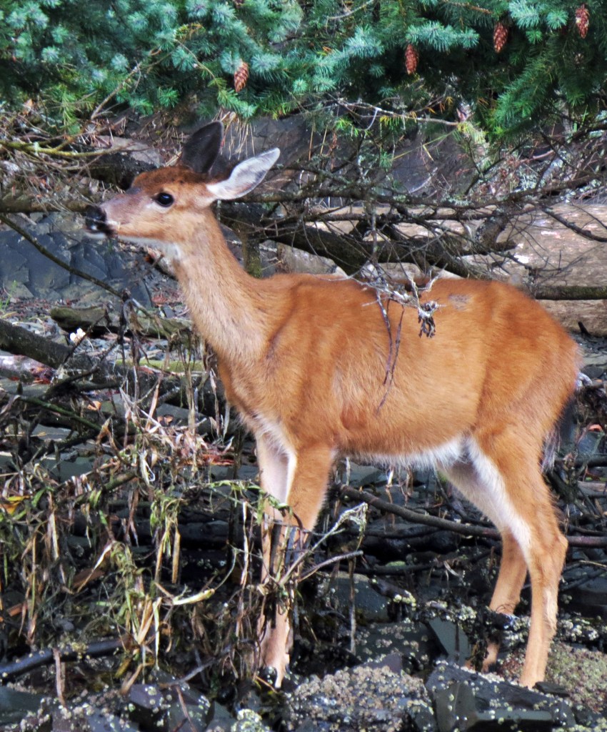 On my way in to the beach, I spotted this deer nibbling on trees.