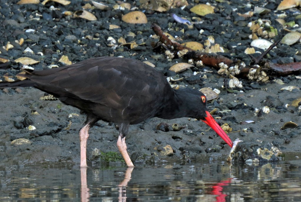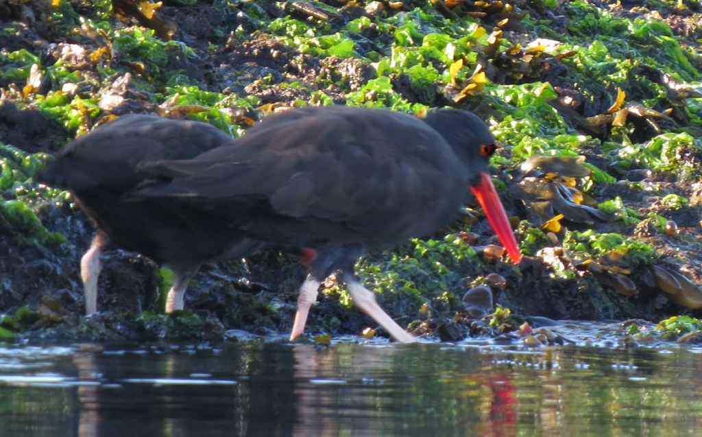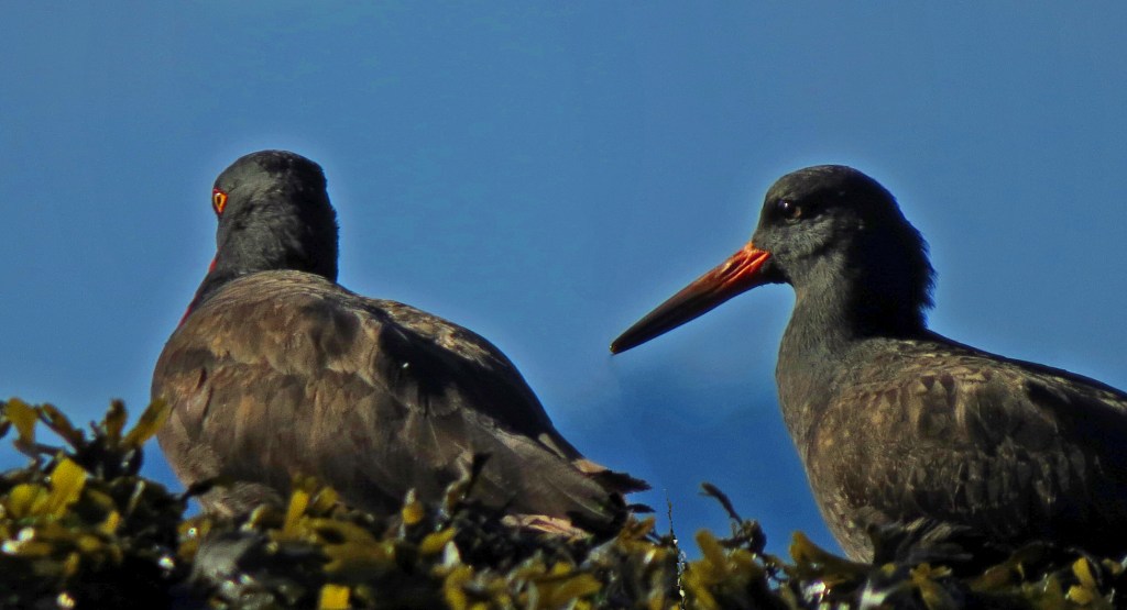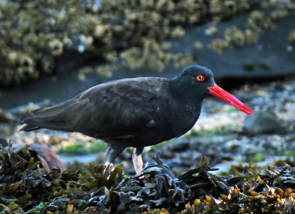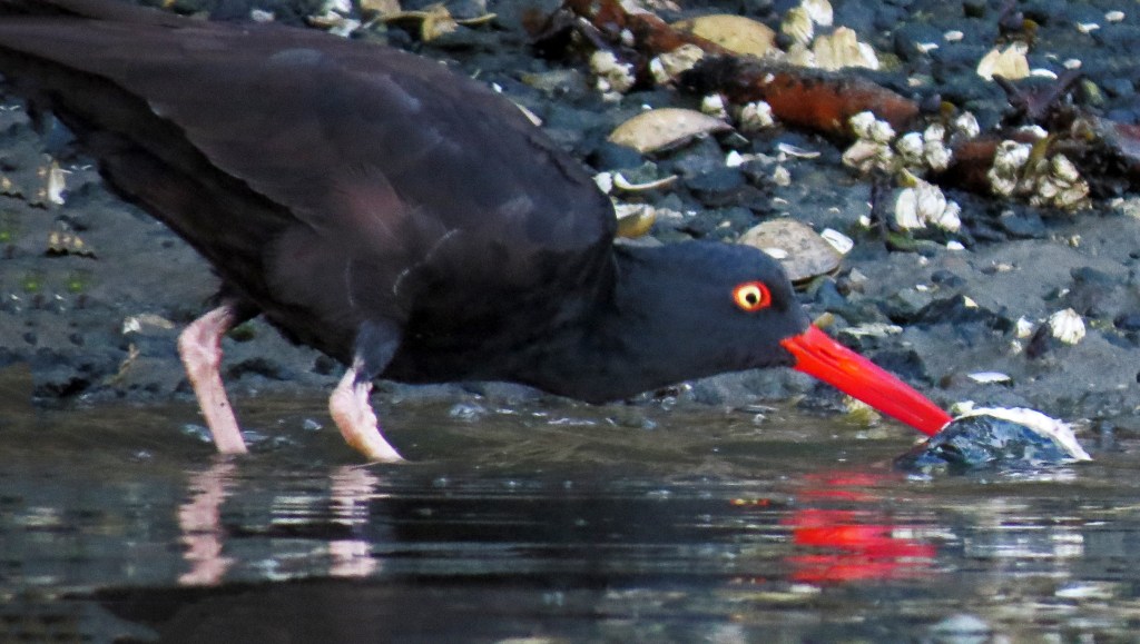 Well, I figured I’d better head back to the boat if we were going to take advantage of these calm traveling conditions. Out of the corner of my eye, I spotted something scurrying over the rocks….an oyster catcher! I love these guys, and their crazy eyes. There is an oyster farm in Westcott Bay, but this fellow was going for the wild ones.