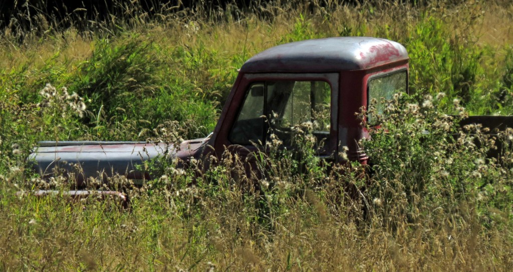 As I was puffing up one hill, I spotted the remains of this very old automobile discarded in a ditch. Someone apparently felt it was too expensive to pay to have it hauled off the island.