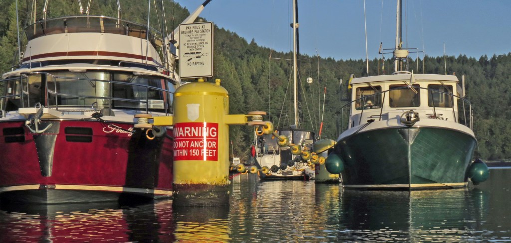 And, there were boats on both sides of the new-fangled mooring arrangement this morning, so I had to get a shot of that. Surprisingly, when boats are on both sides of the chains, the chains separate. Cool.