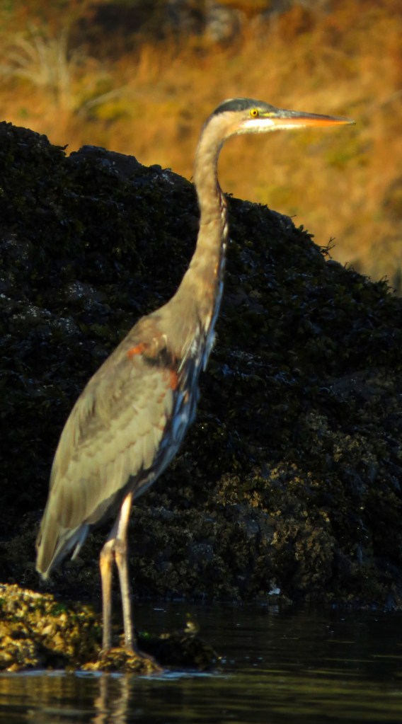 I headed for the entrance to Reid Harbor, checking out the shore as I went. It’s a wonder I was able to spot this heron, he blended in so perfectly with the rocks.