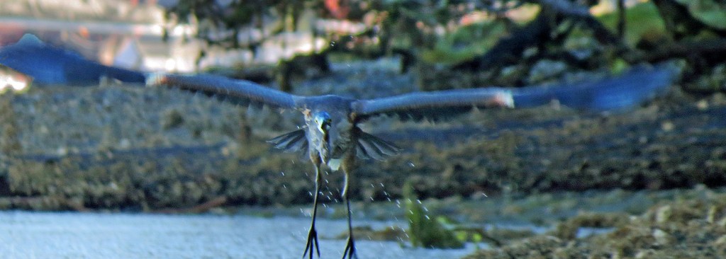 Mr. Heron was not in the mood for squawking seagulls this early in the morning, and took off for quieter feeding ground. He surprised me, flying right over my head.